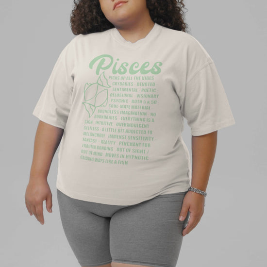 The design features a Pisces twin fish graphic, alongside personality traits that capture their imaginative spirit—with a dash of humor that will have you laughing, nodding, and wondering if we've secretly been reading your birth chart.