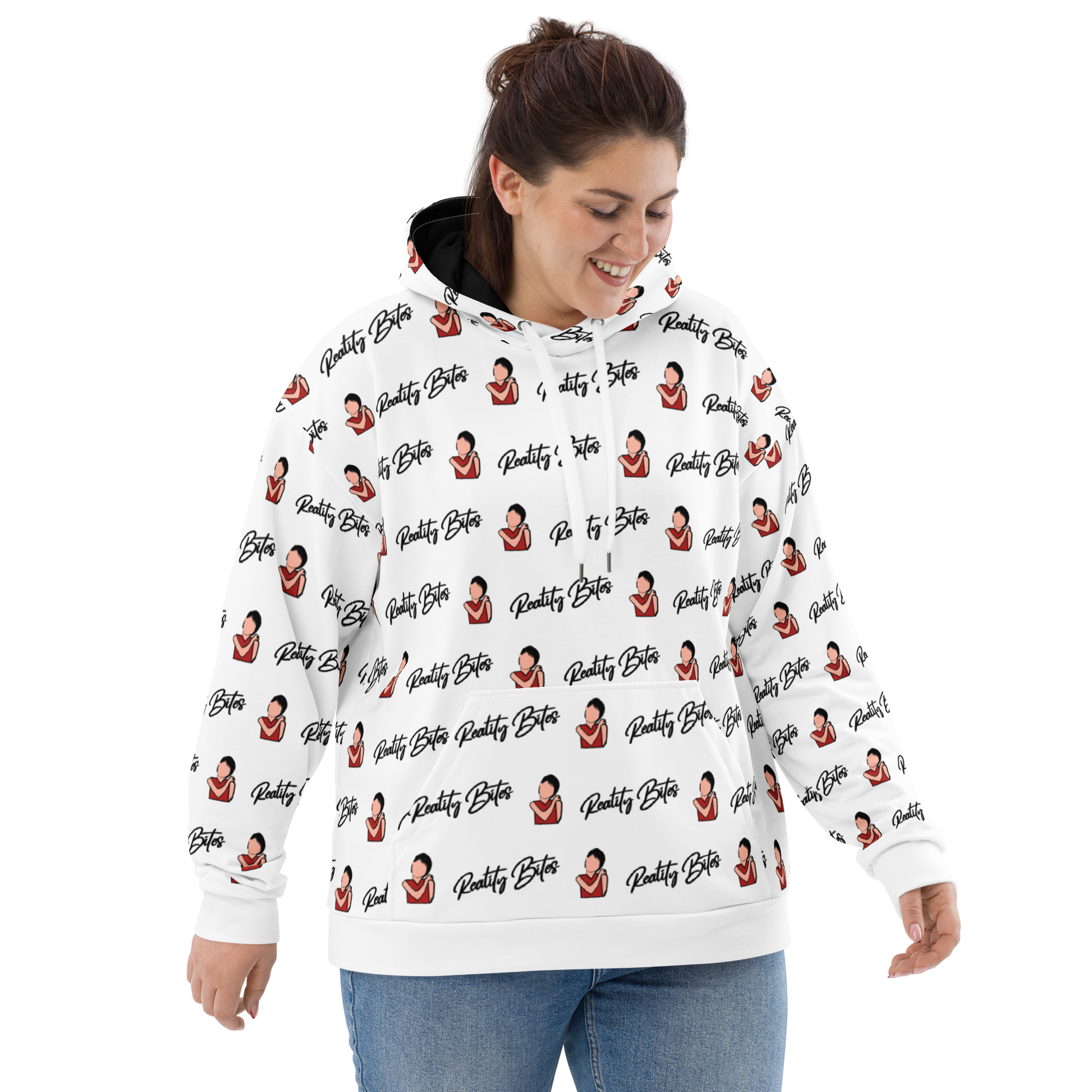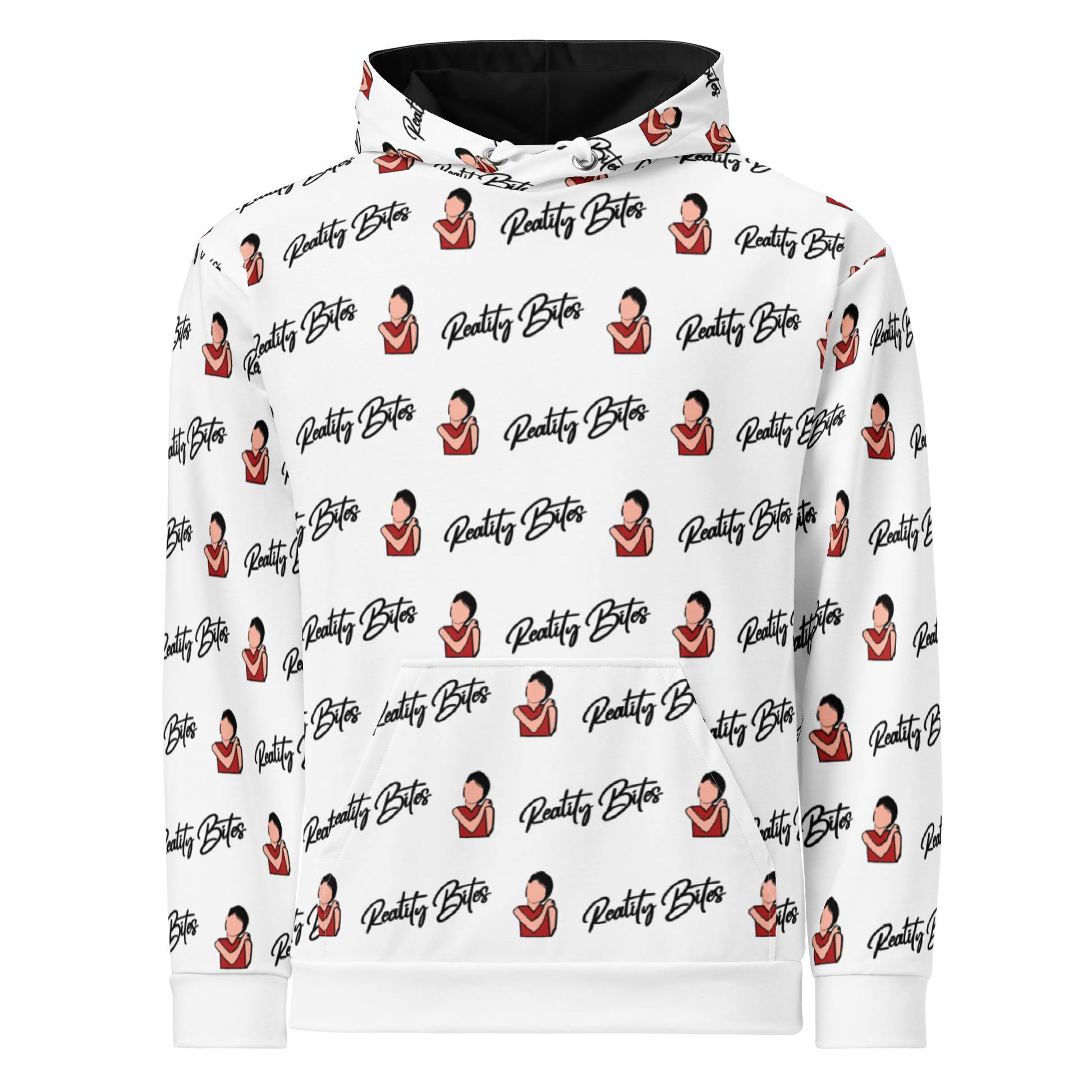 Channel your inner ’90s icon with this all-over print hoodie inspired by Reality Bites. The design features a hand-drawn illustration of Winona Ryder’s iconic character, Lelaina.