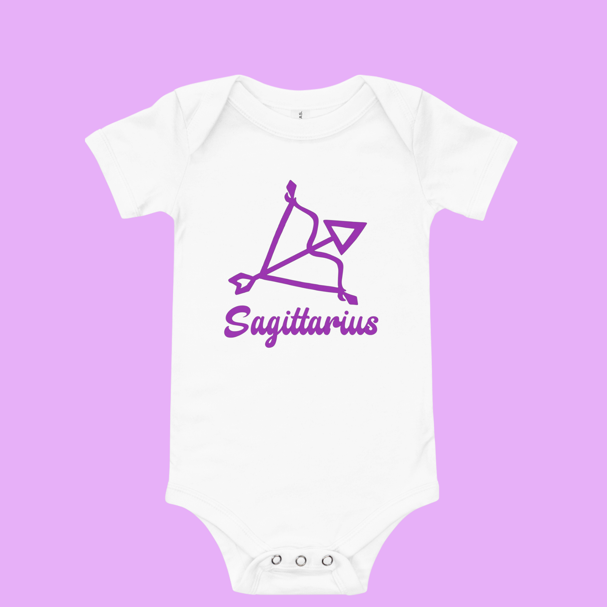 Our Sagittarius archer baby bodysuit is the perfect zodiac sign gift for babies celebrating a birthday between November 23rd - December 21st.